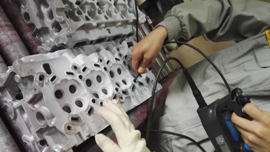 上圖為亞泰光電SIE超清系列視頻內窺鏡在雷諾汽車鑄造車間檢查氣缸缸蓋做內部探傷,以判斷是否合格.