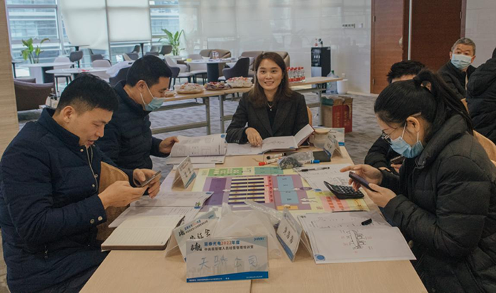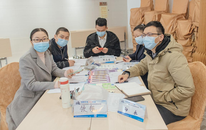 參訓(xùn)學(xué)員分成6個(gè)小組,模擬企業(yè)實(shí)際運(yùn)作背景,每組代表一家虛擬企業(yè),各小組成員按角色分工,分別擔(dān)任企業(yè)中的總裁、市場(chǎng)營銷總監(jiān)、生產(chǎn)總監(jiān)、財(cái)務(wù)總監(jiān)、研發(fā)總監(jiān)等職位,一家家企業(yè)相繼成立。