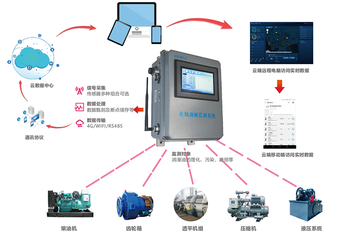 解決方案:從油液在線監(jiān)測(cè)出發(fā)進(jìn)行機(jī)械設(shè)備故障診斷, 能夠較為準(zhǔn)確地預(yù)測(cè)故障的原因及部位, 更全面地監(jiān)測(cè)設(shè)備的運(yùn)轉(zhuǎn)情況, 并能利用早期預(yù)報(bào)及時(shí)發(fā)現(xiàn)和排除設(shè)備的故障隱患, 減少損失。