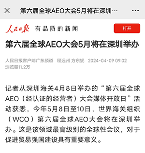 人民日報關注深圳第六屆全球AEO大會