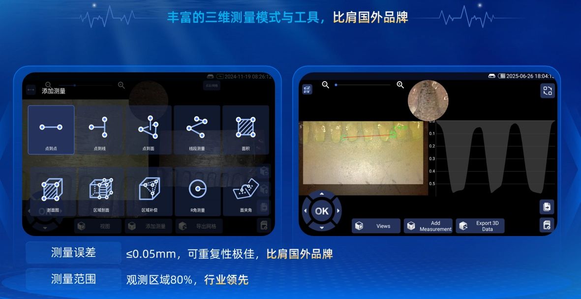 工業內窺鏡是航空航天、能源電力、精密制造等領域不可或缺的“工業醫生”,用于檢測設備內部深處的缺陷。然而,高端的、具備三維測量能力的智能內窺鏡設備長期被國外品牌壟斷,價格高昂且存在技術封鎖風險。