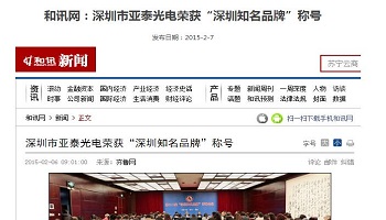 和訊網:深圳市亞泰光電榮獲“深圳知名品牌”稱號