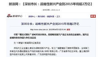 新浪網:【深圳市長:戰略性新興產業到2015年將超2萬億】